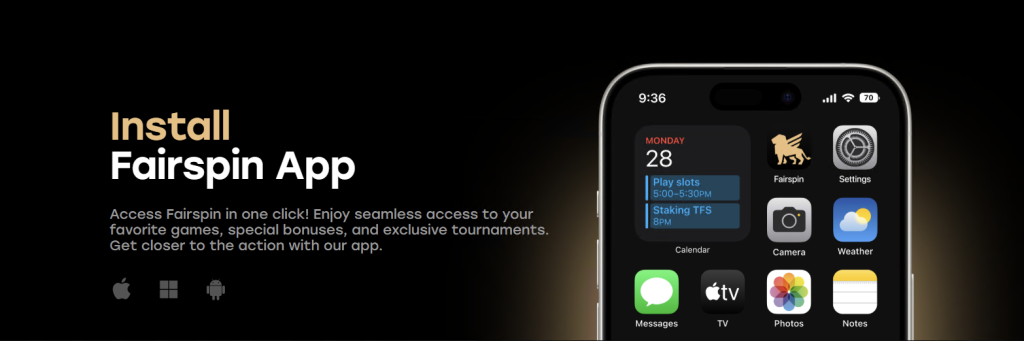 While the platform does not offer a traditional store app, the website provides an excellent mobile casino experience on smartphones and tablets via the Fairspin app (PWA). The mobile version is fast, responsive, and retains all the functions of the desktop site.