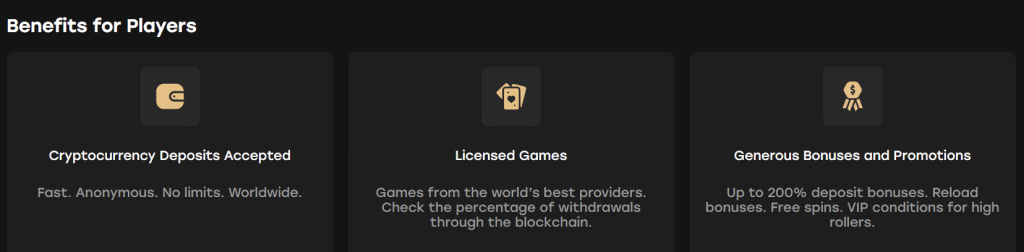 The casino prioritizes player security using advanced encryption and blockchain technology.