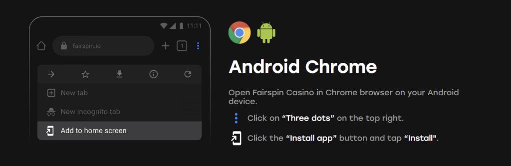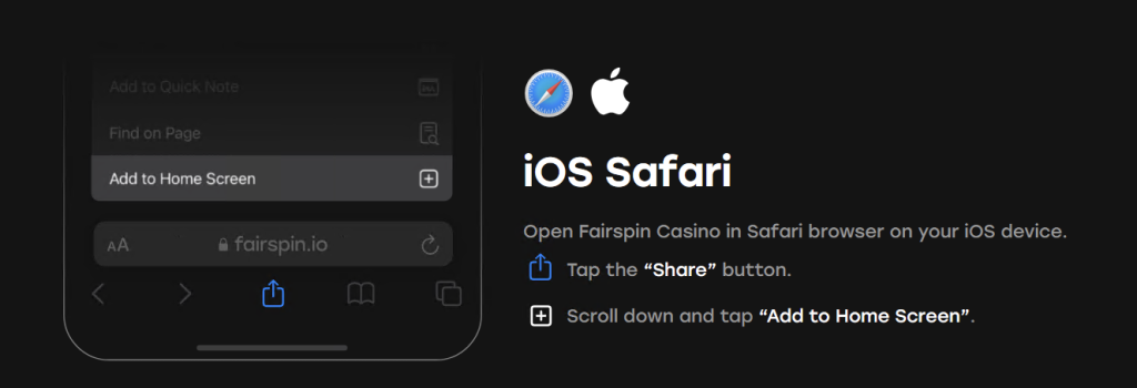 - Android and iOS Access: The Fairspin app can be quickly added from the browser via the “Add to Home Screen” function.
